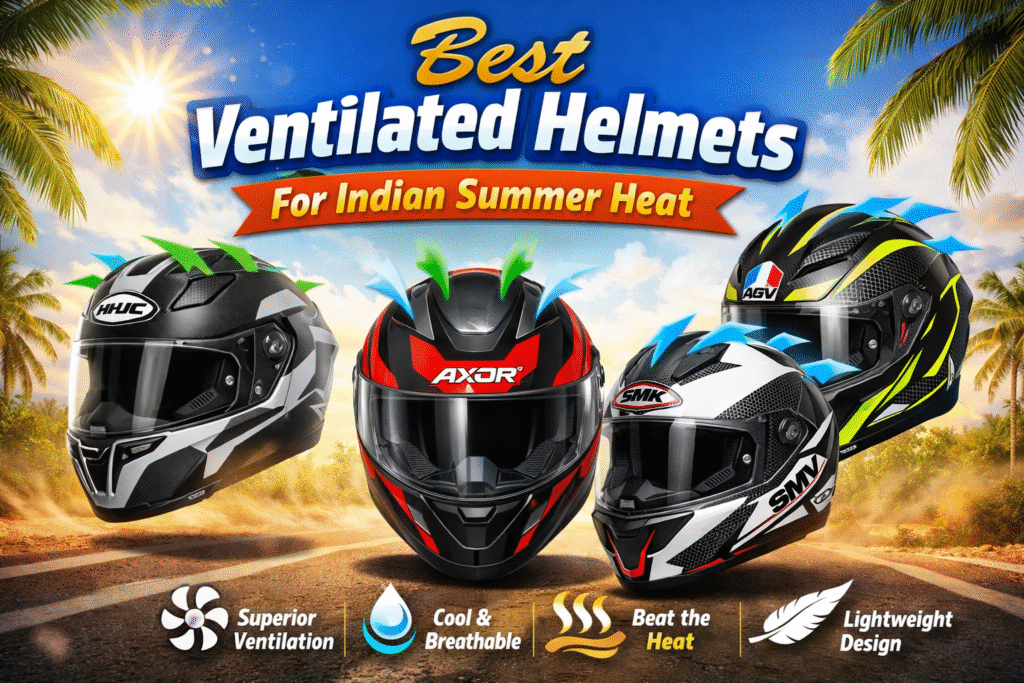 Delhi summers hit 45°C+ – helmet sweat, fogging, and heat exhaustion make riding miserable. A well-ventilated helmet changes everything: multiple